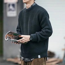 남성용 꽈배기 라인 포인트 심플한 오버핏 라운드넥 니트
