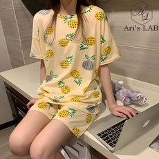 아리스랩 여성 반팔 파자마 상하 세트 여름 반팔 잠옷