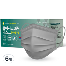 퓨어시스 MB필터 3중 일회용 마스크 대형, 50개입, 6개, 그레이