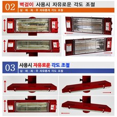 벽걸이 전기난로 근적외선 벽히터 열풍기 국산 난로 온열기 2단 강약조절 순간난방 절전형 상하 좌우 각도조절 전자파없는 가정용 업소용 사무실 매장 식당, 레드