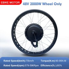 전기 자전거 변환 키트 4.0 타이어 리어 휠 허브 모터 아웃 팻 48V 2000W 20 24 26 인치 190mm, Wheel Only, Rear Rotate 190mm_26