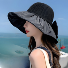 제이앤 여름 여성 비치 쉘 와이드챙 돔 리본 벙거지 버킷햇 자외선 차단 모자