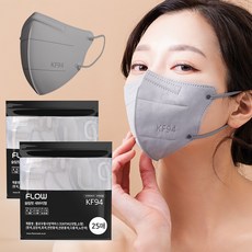 FLOW 슬림핏 KF94 새부리형 마스크 대형, 그레이, 2개, 25매입
