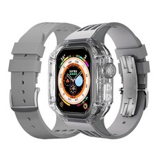 애플워치 울트라 호환 일체형 케이스 스트랩 디버클 시계줄, 투명, 그레이