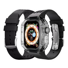 애플워치 울트라 호환 일체형 케이스 스트랩 디버클 시계줄, 투명, 블랙