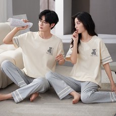 도씨 커플용 반팔 카라 잠옷 상하의 세트