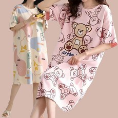 주디앤 여성 미니 곰돌이 셔링 짱짱 반팔 파자마 원피스