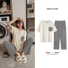 1+1 여성용 반팔 파자마 상하의 세트 홈웨어 냉장고 잠옷
