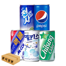 미니캔 탄산 음료 펩시콜라 칠성사이다 밀키스 맥콜 천연사이다, 25개, 190ml