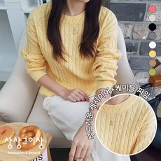 상상그이상 여성용 국내제작 카시아케이블 간절기 라운드넥 니트 긴팔 베이직핏 꽈배기 데일리룩 캐주얼 심플 기본 필수템 봄 가을 겨울 파스텔 벚꽃축제 공원룩 데이트룩 신축성 카페룩