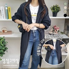 상상그이상 여성용 8110후드롱스트링점퍼 간절기 바람막이 야상 집업 포켓 나일론 무지 포인트 긴팔 장마 봄옷 트레이닝 츄리닝 아우터 꾸안꾸 데일리룩 아노락 캐주얼 공원 산책 운동복
