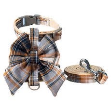 고양이 바디보 리본 가슴줄 + 산책 하네스 세트, 브라운