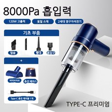 히모망 차량용청소기 다용도강력 무선 진공 미니 청소기 무선 핸드셋 가정용 소형 미니 송풍 일체형 청소기 XCQ-LT-117, 117CG 프리미엄 블루+TYPE-C+ 충전대