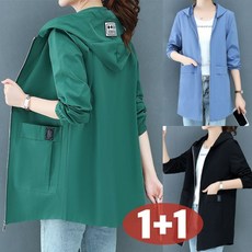 빅사이즈 1+1 봄 추천 여성 특가상품 간절기 외출 자외선차단 바람막이 트렌치코트 쟈켓 후드 심플 집업 루즈핏 캠핑 여행 아우터 코디 캐주얼 패션 데일리 코트 점퍼