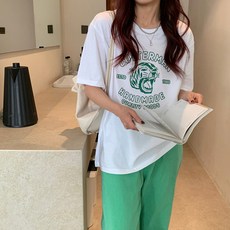 베르슈어 레터링 오버핏 빅사이즈 롱 반팔티