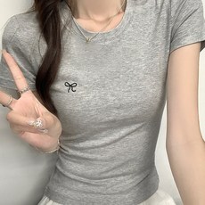 [당일출고]수엠W 여름 심플 라운드넥 반팔 S235 미니자수리본티
