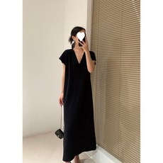 ANYOU여름원피스 블랙 루즈핏 빅사이즈 롱원피스 하객원피스 단추 스타일 휴양지원피스