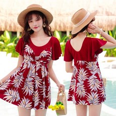 빅사이즈 체형 커버 온천 수영복 패션 수영복 엄마패션 날씬해보이는 수영복, 레드