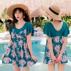 빅사이즈 체형 커버 온천 수영복 패션 수영복 엄마패션 날씬해보이는 수영복, 그린