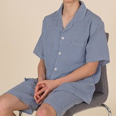 도씨 남성용 시어서커 레이온 카라 반팔 잠옷 세트 D8801