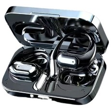 QYUNER 노이즈 캔슬링 귀걸이형 스포츠 운동 오픈형 무선 블루투스 이어폰, 블랙