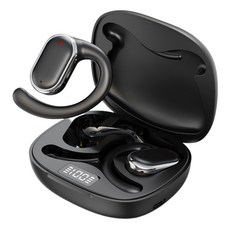 QYUNER 귀걸이형 Hi Fi 오픈형 스포츠 운동 무선 블루투스 이어폰, 블랙