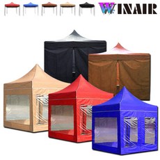 WINAIR 리뷰이벤트 국내 당일발송 프리미엄 끈타입 접이식 천막 지붕+프레임+바람막이(일반/투명) 행사용 캠핑용 방수 그늘막텐트, A세트(지붕+프레임), 2mx2m, 브라운
