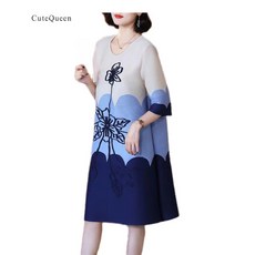 2023 여름 라운드넥 패션 프린트 루즈핏 5부 소매 여성 주름 원피스 Whr0813