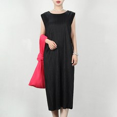 아쿠린 플리츠 주름 이세이 민소매 롱 원피스