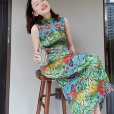 프린트 루즈 라운드 민소매 여름 셔링 원피스 FC6192