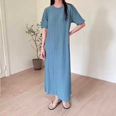 풍격 이세이 플리츠 주름 와이드 루즈핏 반팔 미디 원피스