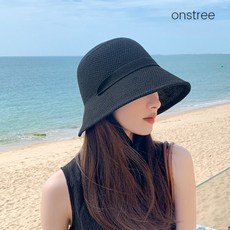 온스트리 가벼운 여름 니트 리본끈 버킷햇 자외선차단모자