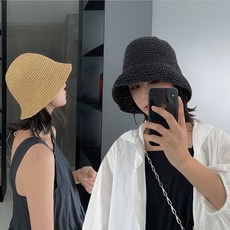유유라키 여름 와이어 밀짚 라탄 버킷햇 모자