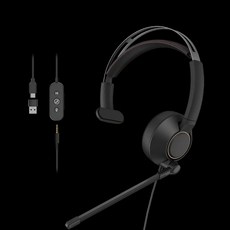NUROUM 비즈니스 헤드셋 HP11-SU(3.5mm+USB 포함) 조절 가능한 머리띠 및 270° 회전 가능한 느이즈 캔슬링 마이크, 블랙, HP11-SU(
