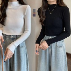 제니트 여성용 기본핏 하프넥 데일리룩 베이직 비스코스 니트 핫걸반목컬러 n1991