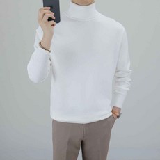 로코비전 남성 목폴라 니트 캐시미어 터틀넥 오버핏 부드러운 스웨터