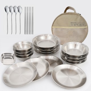 브리즈문 연마제 세척 SUS304 무광 캠핑 식기 그릇 커트러리 28p 세트, 1세트