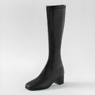 ANYOU 여성 롱부츠 겨울부츠 슬림핏 베이직 가죽 롱 부츠 지퍼 기높이 부츠 3cm