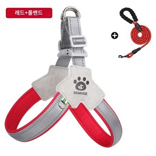 중 대형견 하네스 +리드줄 세트, 1개, 레드