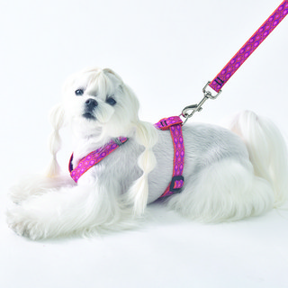 주랜드 강아지 야간 빛 반사 하네스, 핑크 + 네이비블루, 1개