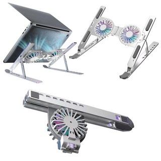 뷰데이 휴대용 노트북거치대 받침대 높이조절 팬쿨러, 그레이, 1개