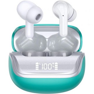 무선 이어버드 블루투스 5.4 헤드폰 딥 베이스 스테레오 4개의 ENC 마이크가 장착된 인이어 이어폰 45시간 플레이타임 LED 디스플레이 미니 충전 케이스 안드로이드 iOS용, Green White