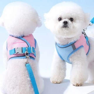 강아지 하네스 여름용 애견 초경량 쿨 메쉬, 블루핑크, 1개