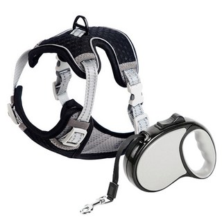 바우먀우 메쉬 하네스 자동리드줄 세트, 블랙, 1개