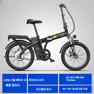 GLTM 전기자전거 초경량 접이식 출퇴근 48V 400W, 블랙, 스틸