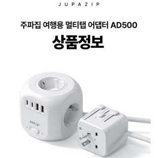 JUPAZIP 여행용 멀티탭 어댑터 AD500, 1개, 화이트