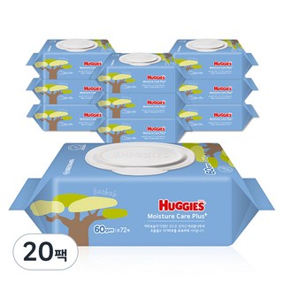 하기스 모이스쳐케어 플러스 유아물티슈 캡형, 60g, 72개입, 20개