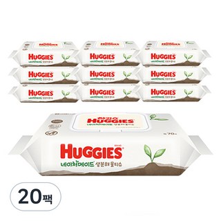 하기스 네이처메이드 생분해 물티슈 화이트 캡형, 70개입, 20개