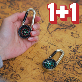 [1+1] 루앤시 버클 나침반 키링 키홀더 열쇠고리 등산 캠핑, 1세트, 레드+그린