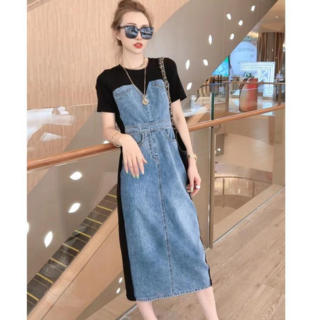 비비디아 Bibidia 여성 데님 슬림 원피스 롱 청치마 반팔티5332